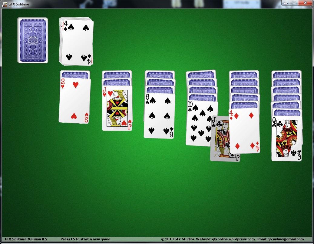 قمت بعمل 3 ألعاب حتى الآن، وهي نسخ مطابقة لألعاب أخرى شهيرة كـBejeweled باستخدام Delphi 7 و Mastermind باستخدام C#، ولعبة سوليتير باستخدام XNA. وهي اللعبة التي أحببت أن أشارككم بها لأنها تمثّل أول لعبة متكاملة قمت بانشائها، وأنا فخور جداً بما أنجزته نظراً لكوني وحيداً ولم أتلقّ المساعدة سوى من بعض الكتب ومراجع في الانترنت! وهي بالطبع غير كافية.أما في 28/ذو القعدة/1431 05:01 م، فقد تنهد GFX بارتياح وهو يرد: