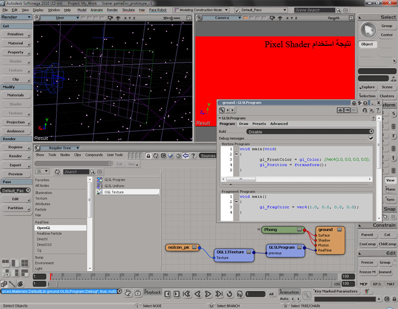 هذا أدى إلى جعل الـ XSI يقوم بأخذ قيمة لونية من الإكساء وضربها باللون الأحمر الناتج من الـ Vertex Shader مما أدى للنتيجة السابقة.