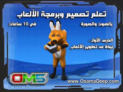 أقدم لكم في هذه الفترة سلسلة جديدة بعنوان ، تعلم تصميم وبرمجة الألعاب في 10 ساعات ، وهي سلسلة قمت بتسجيلها بالصوت والصورة لتكون أساساً لمن يريد الدخول في هذا المجال . والتي أسأل الله العلي العظيم أن تكون خالصة لوجهه الكريم .